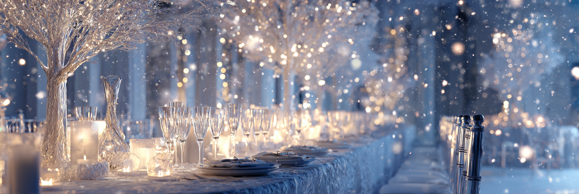 For The Snowfall Soirée, think winter luxury — white, silver, gold, and icy blue. Picture shimmering fabrics, classy silhouettes, and a touch of sparkle under the lights.